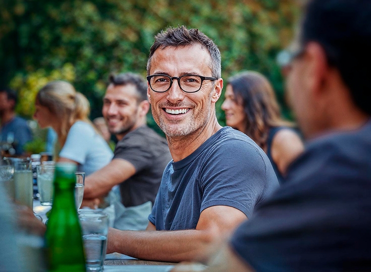 Our eyes change as we get older. This means that when we become middle-aged the eye lens is no longer quite as elastic. It becomes increasingly difficult for the eyes to switch between near and distance vision – the eyes need some assistance. Progressive lenses are the ideal solution here. Because with progressive lenses you don't have the annoying and inconvenient task of changing spectacles.